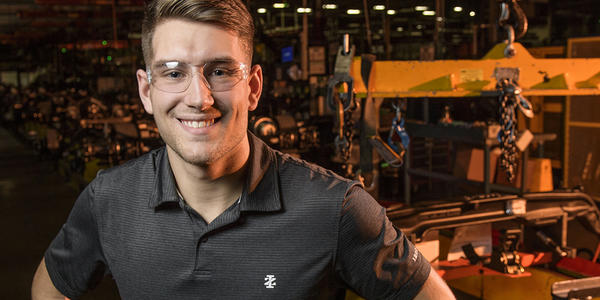 Wright State mechanical engineering student R.J. McCoy plays a major role in producing trucks during an internship at Navistar in Springfield. |
