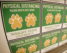 Floor decals, door postings and physical distancing stickers have been installed around campus to remind employees and students about public health guidelines.