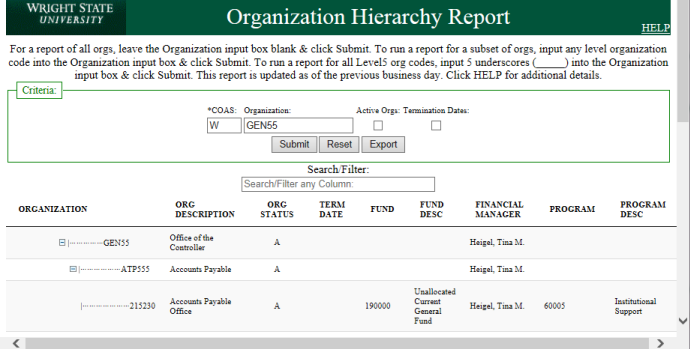 - The organizational hierarchy can be viewed via the FOAPAL Hierarchies link on WINGS Express Finance. The hierarchy follows the WSU organizational structure.