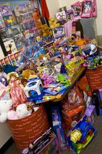 Festive, colorfully wrapped barrels are popping up around the Dayton campus as part of the annual Christmas for Kids toy drive.