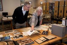 Erik Lindbergh visited the Special Collections and Archives to pore over documents and photos and view a home movie of Charles Lindbergh’s meeting with Orville Wright in 1927.