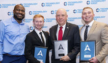 Matthew Cavender and Cameron Cross won the Award of Excellence for College Student Project and interim Dean Donald Hopkins received the Legacy of Leadership Award from Technology First.
