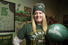 Kristie McKiernan, Wright State grad and senior English lecturer, is a superfan of the Raiders, missing only three home games and attending road contests as far away as Chicago over the past eight years.