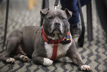 Wright State couple Ash and Sarah McGinleys rescued Marco, a pit bull, from an adoption center in Virginia Beach, Virginia.