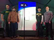Three Wright State University electrical engineering students worked with DP&L to create a light switch for the Grande Illumination Ceremony on Courthouse Square in Dayton.