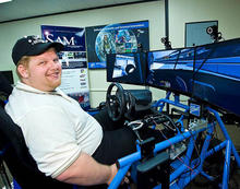 Wright State graduate Benjamin Ausdenmoore played a key role in outfitting a racing simulator that allows a disabled person to drive.