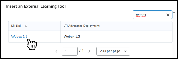 - Embedded in the content: If you choose to place it, they can access it from your specifically placed Webex LTI.