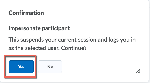Confirm that you want to impersonate the Demo Student.