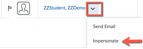 Click the arrow to the right of the name and select “Impersonate.“