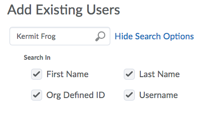 On the next screen, put search terms in the Add Existing Users box to find the person you want to add. Use first name and last name, “w” number, or UID: