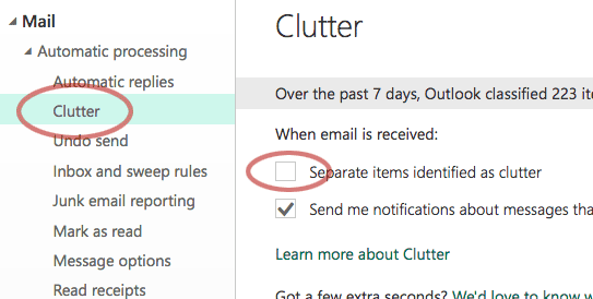 - turn off the Clutter feature.