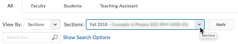 Click “Apply” again and the Classlist will show only the students in the section you chose.