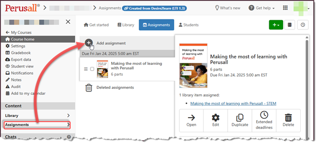 - From the Content section in your Perusall course, select Assignments