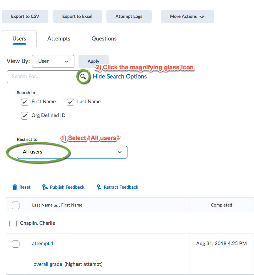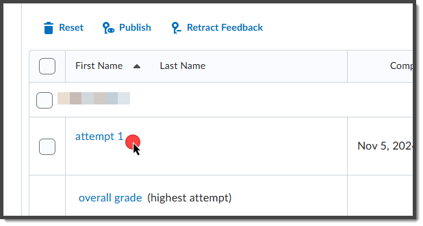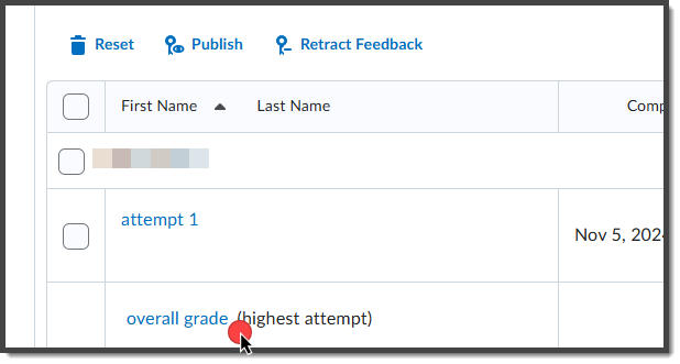 Select the button in front of “Update All Attempts.”