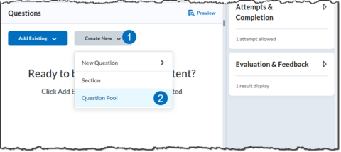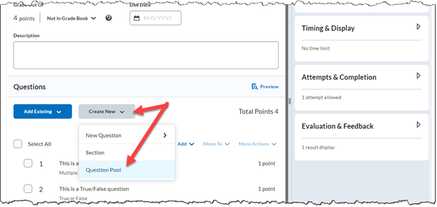 From the Quiz, click Create New then Question Pool.