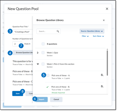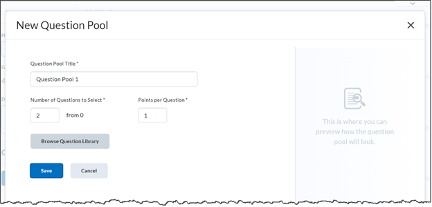 Title the Pool, determine the number of questions to be used from the pool, points per question, and select Browse Question Library.