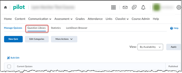 From Assessment > Quizzes & Exams, click on Question Library.