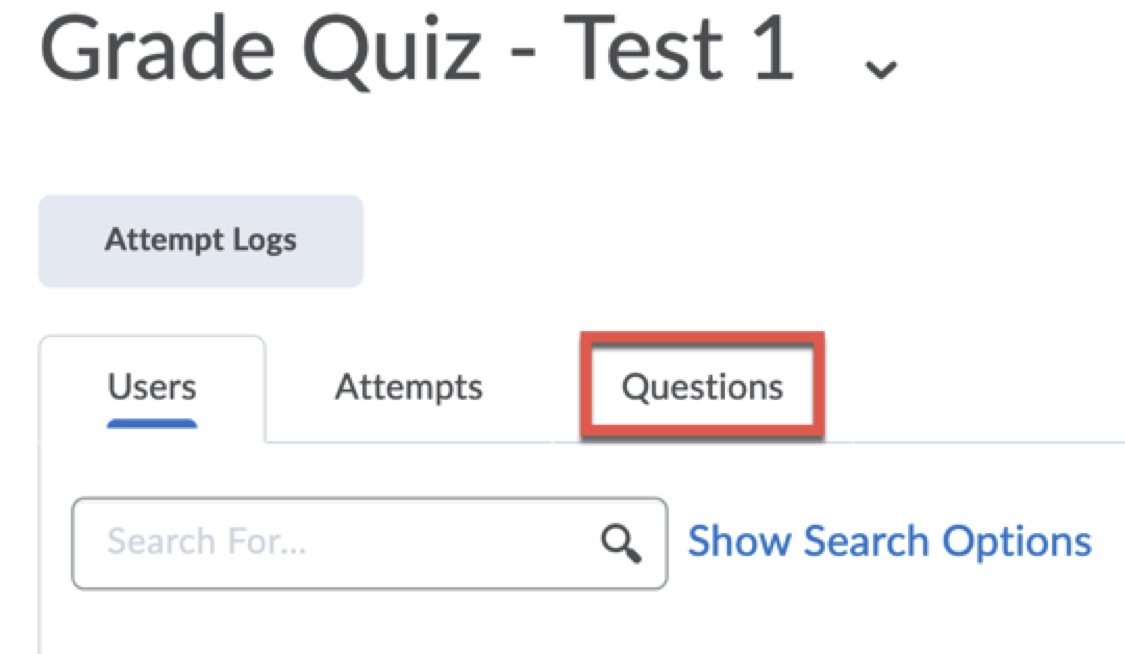 On the “Grade Quiz” page, click the “Questions” tab near the top.