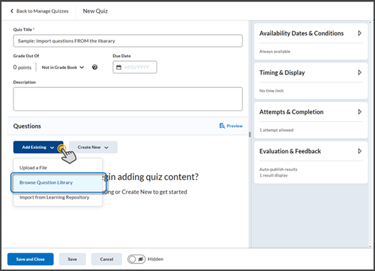 - Browse Question Library: Pick existing questions from the Question Library