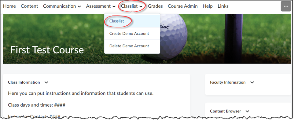 From the Navbar, click Classlist and then Classlist again.