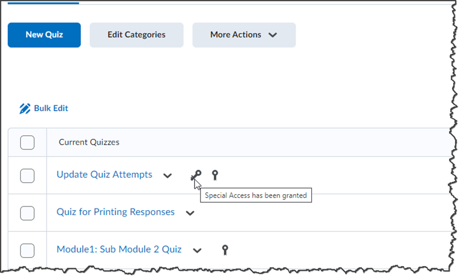If you see the Key icon next to an individual quiz, you know special accommodations has been granted to someone.