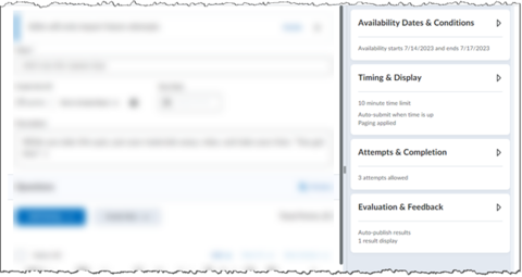 The Quizzes & Exams tool enables you to create and manage points-measured assessments. You can create and manage quiz questions from the Question Library or the Quizzes & Exams tool, and organize quizzes into categories to make it easier to find assessments with similar or related content. The quiz preview option allows you to test the accuracy of content and grading before you release a quiz. In a preview, you can answer the questions, view allowed hints, submit the quiz, auto-grade answers, read feedback, and view report results.