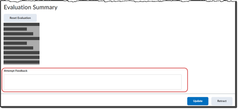 Scroll to Evaluation Summary and type into the Attempt Feedback field.