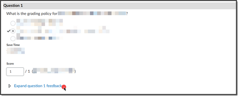 Here is how students see results, such as what questions they got right or wrong. This assumes the instructor has set up the “submission view” to allow students to see more than just their grade.