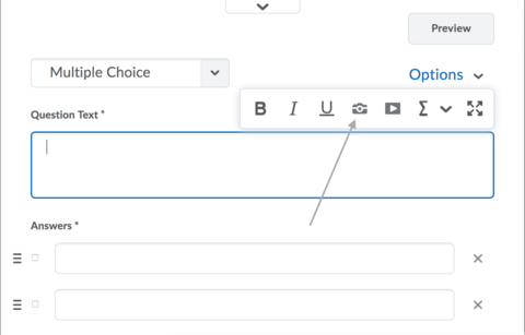 - Many question types give you the option of inserting an image. Click the Insert an Image button to insert an image.
