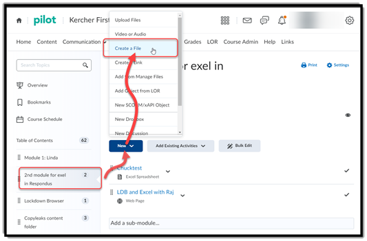 Create a module in the course