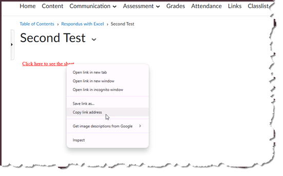 - Next, hover over the link you created, right-mouse click and select Copy Link Address.