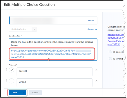 - Using either a new question or an existing one, paste the link into the Question Text box.
