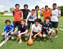 Fueled by the fervor of the World Cup, students in the LEAP Intensive English Program organize soccer game at Mulholland Field.