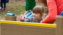 Mini U preschool students hunt for Easter eggs provided by Wright State’s Department of Public Safety.