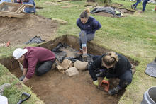 During a six-week dig, students in Wright State's Field School in Archaeology uncovered a limestone foundation of a structure occupied by frontier settlers outside of Springfield, Ohio.