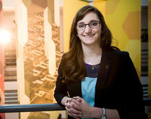 Wright State engineering student Emily Burns puts Air Force engines through computer simulations at Wright-Patterson Air Force Base.