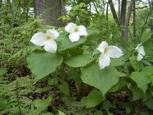 A lush thicket several feet high flanks a clearing on the forest floor. A marsh lies on the other side...