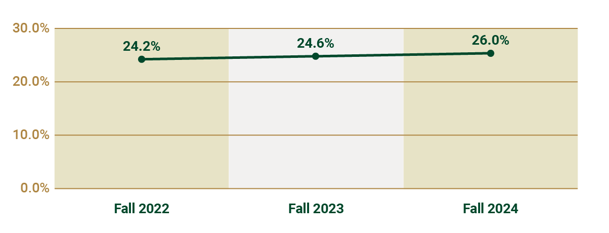 | Student Representation | 24.2% | 24.6% | 26.0% |