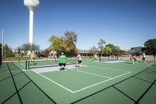 Tucked under the Wright State University water tower on the north end of Parking Lot 4 are two new pickleball courts open to all students, faculty and staff.