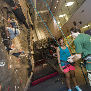 The indoor climbing facility is FREE for students and fitness center members. The daily guest fee is $5. All guests must be accompanied by a student or current fitness center member. Children 12 and under climb free with a student or fitness center member and must be accompanied by an adult.