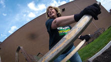 A dozen volunteers helped pull weeds, build new garden beds and lay down mulch to make sure students were ready to learn this summer in the Dayton Campus community garden.
