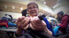 Fleece blankets for sick and traumatized children were cut, tied and labeled by Wright State students, faculty and staff on March 30 in the Student Union Atrium.