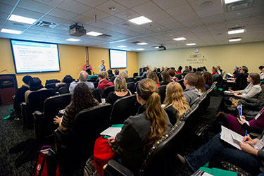 The Discovery Room (163 S.U.) is a conference space available for use by WSU students, faculty/staff and off-campus groups. The Discovery Room can be divided into two separate spaces (A & B) by a folding wall partition. The entire space will seat 90 with each half seating 45 attendees. The Discovery Room contains fixed seating with rows of chairs that have flip-up desktops. The Discovery Room is capable of supporting full A/V equipment orders and limited catering options (not suitable for meal service).