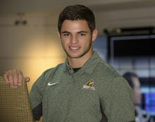 Derek Desentz, a junior computer science and computer engineering major at Wright State, hones his coding skills as an intern at the Air Force Institute of Technology.